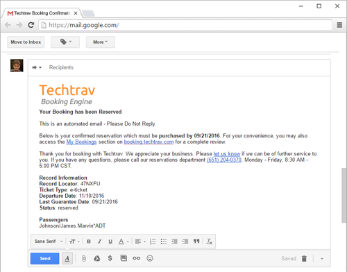 The Booking Engine is configured to make communication with your clients easy. When you make a booking, you have the option of sending your client a passenger quote or passenger receipt. These quotes and receipts can be tailored to show your company’s logo and contact information. You also have the ability to edit the page before sending, allowing you to do things like protect your commission by adding it in the rules.