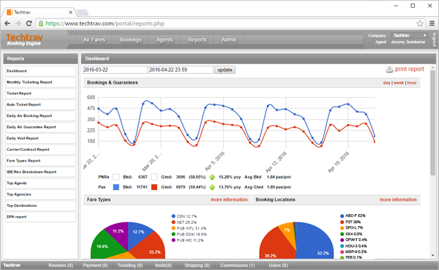 The Booking Engine makes it simple to view any report your company needs. Types of reports include daily bookings, daily voids, carriers and contracts, top agents, top agencies, top destinations, customer service, daily ticketing and monthly ticketing.